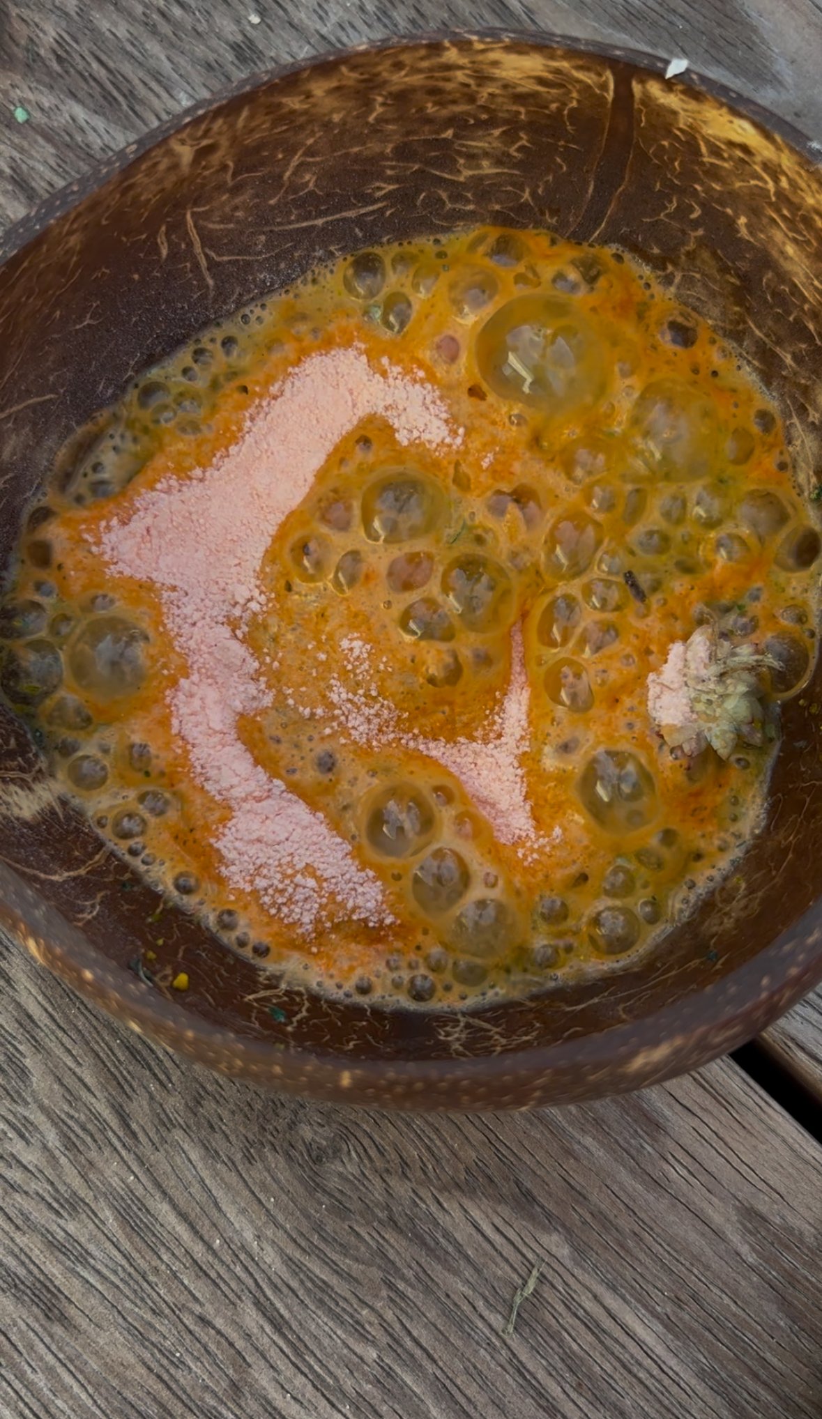 Treasure bag filled with some of our treasures for you to add to (dried flowers, shells, rocks, acorns)